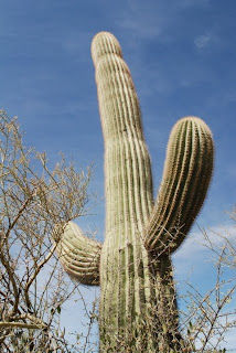 Sonoran Desert Museum, I was reading a sign about beavers in the area. It mentioned that they are no longer found here because of a number of factors, the last of which was “possibly climate change.” I stared at the sign for a moment and then continued on the tour. A few minutes later, we were listening to a great talk about the Saguaro cacti (pictured left) by a knowledgeable docent and he mentioned that the “arms” only grow after the cactus is about 75 years old (see