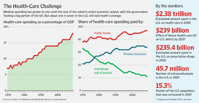 Make people pay more for their own danged care! Since 1970, Americans have gone from paying over 30% of their health care out of pocket to about 10% out of pocket. Why have costs spiraled out of control? Because when people get goods and services for free (or very cheap), they use more.