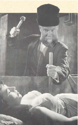 But, just to note: dealing with your standard Southeastern European vampyrus draculensis, you don’t want to rely on the stake—which should be wood, incidentally (ash if you can get it). That just immobilizes the S.O.B. Unless you’ve staked him to a chaise longue poolside at the Bellagio, you haven’t solved your problem permanently. Sure, he looks all dead and dessicated, but he ain’t. If you don’t want to wait for sunrise—and believe me, you don’t want to wait for sunrise—you need to stuff his mouth with garlic, cut off his head, and burn the body. The skull you can keep as a souvenir. Stop by Castle Gormogon sometime, and you can see the Volgi’s vampire tzompantli. It’s in a locked vitrine right now, as the Mandarin was using it as an abacus and the Czar and ’Puter were taking whole rows down to the rumpus room, stringing them on clothesline, and using them as the wire for their eight-ball tournaments. (Who’s better? Who the hell knows. Sleestak’s always bitching about having to drag them up the lengthy spiral staircases unconscious. Apparently they play their own “one travel-mug of schnapps per ball” variant. Dat Ho keeps a mop and pail down there. GorT claims he can’t smell the vomit smell permanently infused in the felt, but Metal Man’s got no nose.)